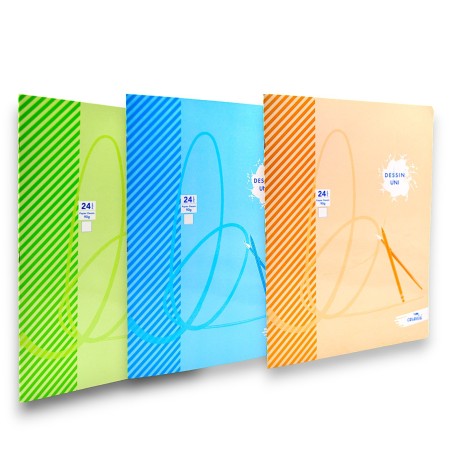 Papier extra blanc 90g - Dessin piqûre Uni- Grammage: 90 - Nombre de pages: 24 -Uni- Dimension : 24x32cm - Couverture vernis lavable