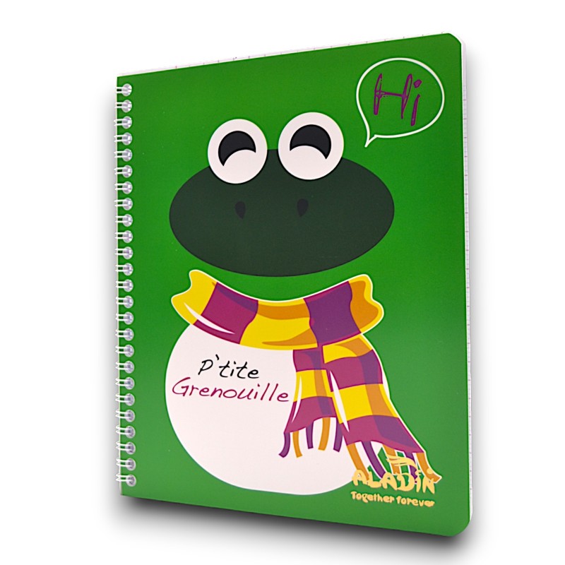 CAHIER WIRO 100P Petit Modèle ALADIN : Nombre de Page : 100 pages - Type de Réglures : Séyès(grand carreau) - Dimension : 17*22cm - Grammage : 80g - Couverture : PolyPropylène PP - Thème : Fantaisie PM: petit modèle.