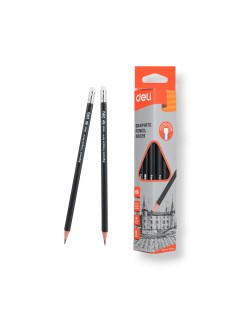 Le crayon graphite HB Deli E38029 possède un corps triangulaire ergonomique pour une prise en main confortable. Crayon de qualité HB. Graphite d'une noirceur intense. Peinture non toxique. Pré-taillé. Virole en aluminium argenté avec gomme sans PVC. Facile à tailler. Matériaux : graphite de tilleul, argile. Paquet de 12 crayons de couleur noirs. Boîte triangulaire.
