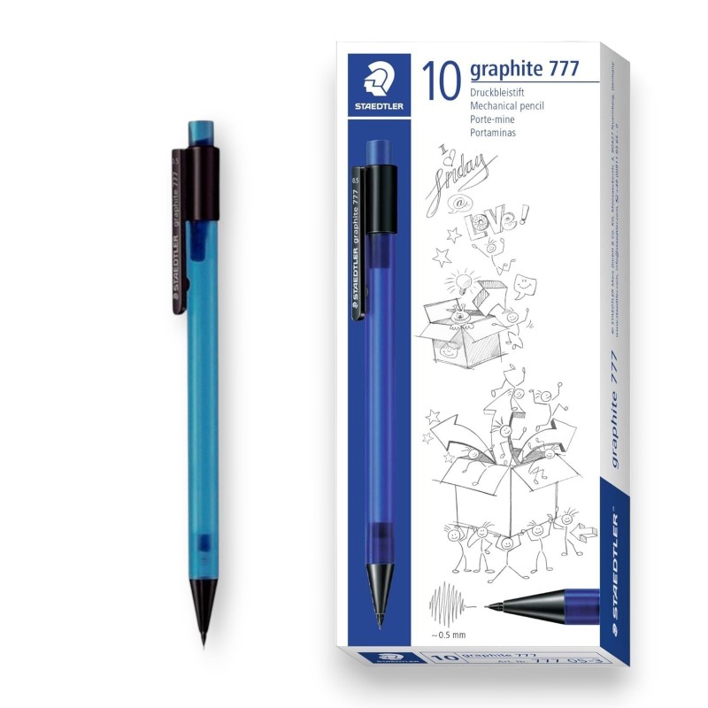 Porte-mine graphite 777 - Mines B - Largeur de trait: 0.5 mm - Corps caoutchouté transparent opaque - Système de prévention anti-casse de la mine - Gomme extra large sans PVC ni latex - Couleur Bleu.