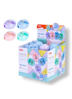Le taille-crayon compact à 2 trou : 1trou de 12 mm et l'autre de 8mm est parfait pour une utilisation à l'école, à la maison ou au bureau ! Le trou d'affûtage monté sur le dessus facilite le guidage du crayon Aiguise toutes les formes de crayons standards, y compris les crayons graphite, sans bois et même les crayons de couleur ! La forme compacte est idéale pour les bureaux et les tiroirs et la coloration lumineuse et amusante contribue à ajouter une touche de couleur à votre espace de travail !